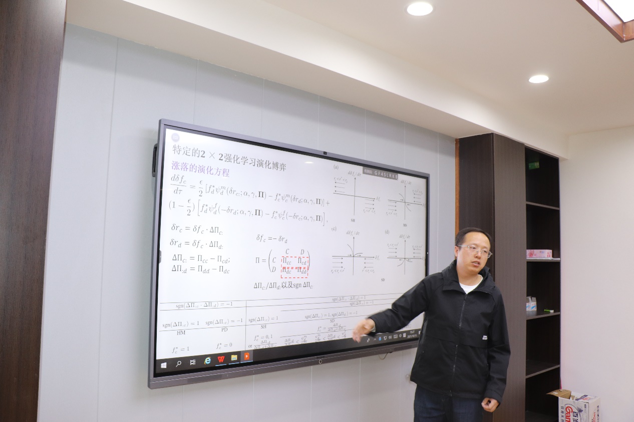 张继强结合自己的教学科研工作先后做了“社会系统中的钉扎调控(pinning control)的资源配置优化研究”、“探索式学习下的合作机制研究”以及“双层网络上的传染病机制探究”的报告。基于报告阐述了复杂性研究在社会系统研究中常用的方法和部分研究内容,有助于促进对统计物理与社会学等学科交进行交叉性融合的理解和认识。