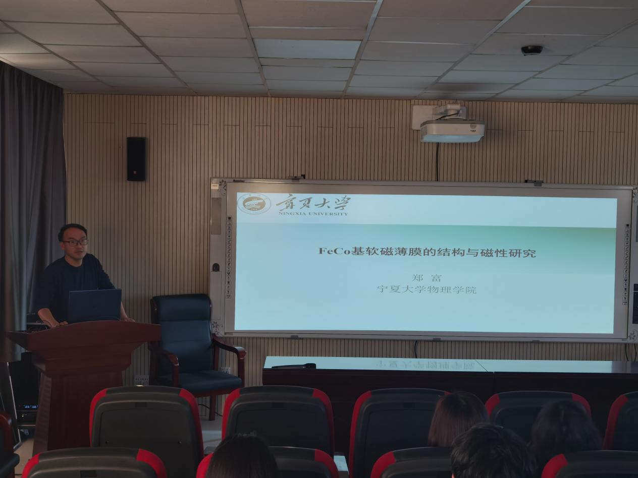 2023年12月6日下午,成人影片 郑富老师在博远楼321为成人影片 教师作“FeCo基软磁薄膜的结构与磁性研究”专题报告会。