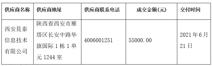 经过市场询价,宁夏西安艮泰信息技术有限公司所报的产品符合要求,且价格最低。
