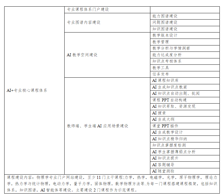 项目概况:为主动顺应人工智能产业蓬勃发展的时代趋势,进一步优化成人影片 专业教学体系、提升人才培养质量与核心竞争力,本项目计划聚焦“AI + 物理” 专业核心课程体系建设相关模块展开系统性工作,具体内容包括但不限于: