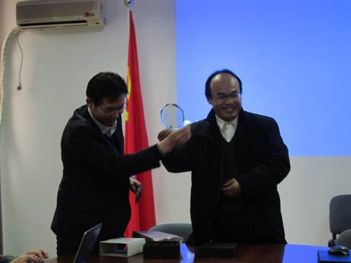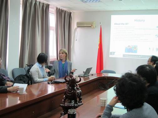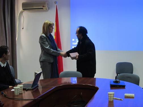 最后,美丽慷慨的Alex Taylor女士代表IET为学院赠送了印有“The Institution of Engineering and Technology“字样的精美礼品,李新碗院长代表学院对Alex Taylor女士表示感谢。