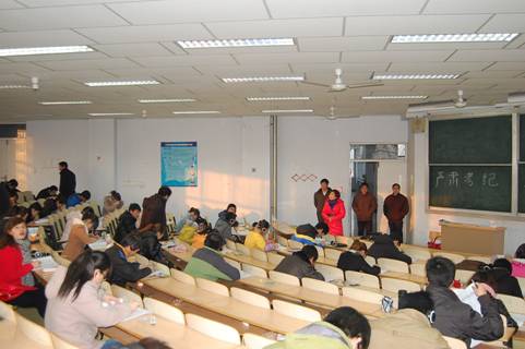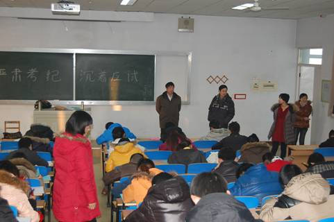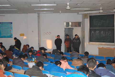 2013年1月7日上午,学院党政领导郭振才、李新碗、赵永军、陈潮红、车进、陈焕铭、王旭明集体出行,分别到学院期末考试各个考场巡视督查学院学生期末考试情况。