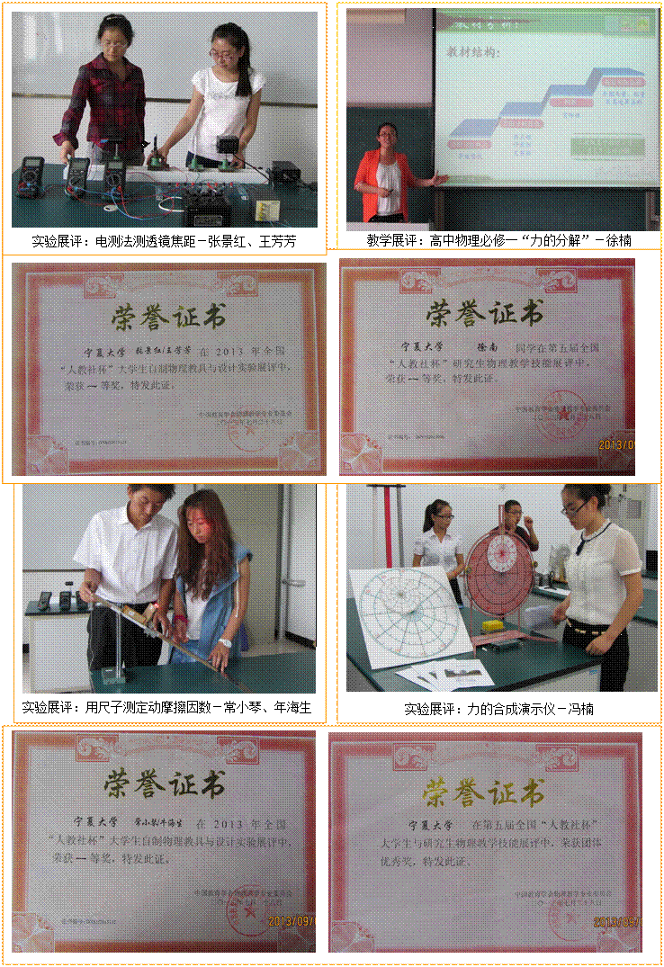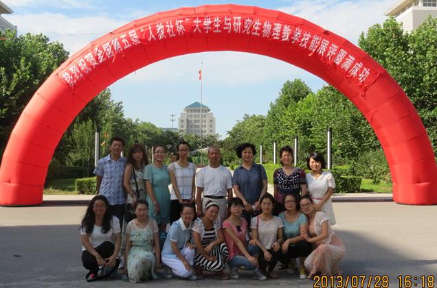由中国教育学会物理教学专业委员会主办的“全国第五届‘人教社杯’大学生与研究生物理教学技能展评”, 2013年7月26日至28日在河北保定学院举行。成人影片 物理电气信息学院的3名指导教师、3名研究生和10名本科生,由王林老师带队组团参加了此次展评。与来自北京师范大学、华东师范大学和东北师范大学等全国106所高校近的一千多名选手同场竞技,成人影片 代表队荣获了3个一等奖、5个二等奖和6个三等奖,同时还获得了本届大赛的“优秀组织奖”,杨晓梅、张轶炳、王林三位导师分别获得“优秀指导教师”荣誉称号。