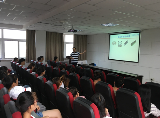 2018年6月21日,兰州大学物理科学与技术学院副教授、博士生导师曹江伟和青年教师王涛来成人影片 进行兰州大学研究生招生的宣讲活动并做题为《磁信息存储与电子自旋》的学术报告。成人影片 2015级物理学(教师教育)、物理学(应用物理)、新能源材料与器件三个专业60余名学生参加了此次宣讲活动。