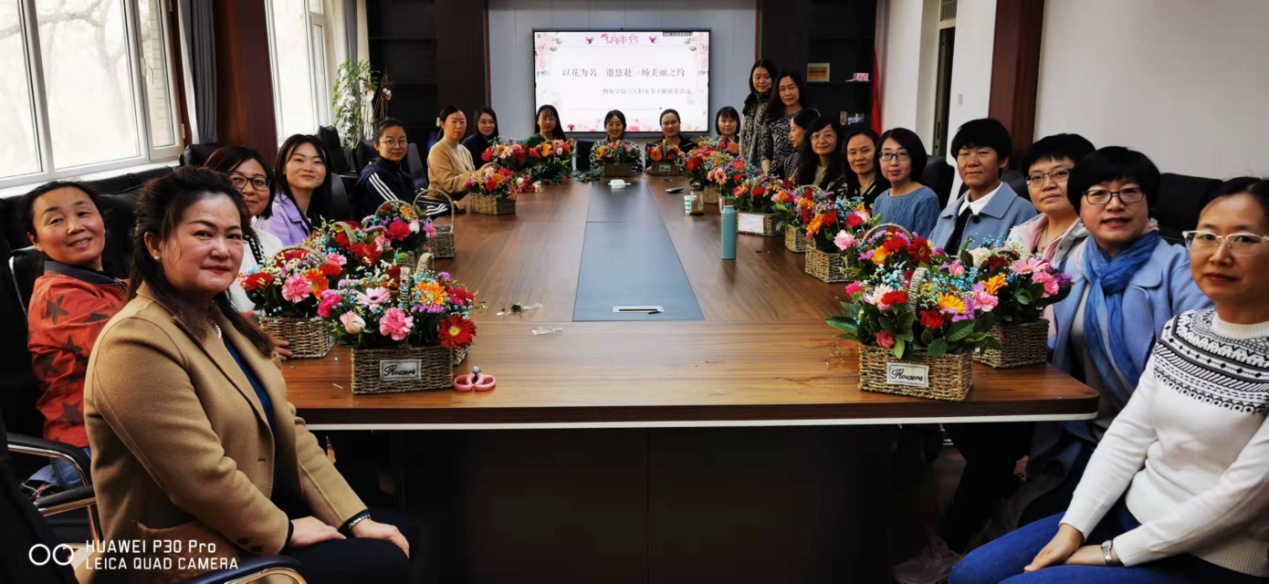 2022年3月8日下午,为温情庆祝第112个国际妇女节,物理与电子电气工程学院分工会特别举办了“以花为名邀您赴一场美丽之约”主题插花艺术礼仪讲座及培训活动。活动由学院分工会女工委员马玲老师主持,银川天地缘花店花艺总监施芳女士主讲,学院全体女教工和部分男教工参加。