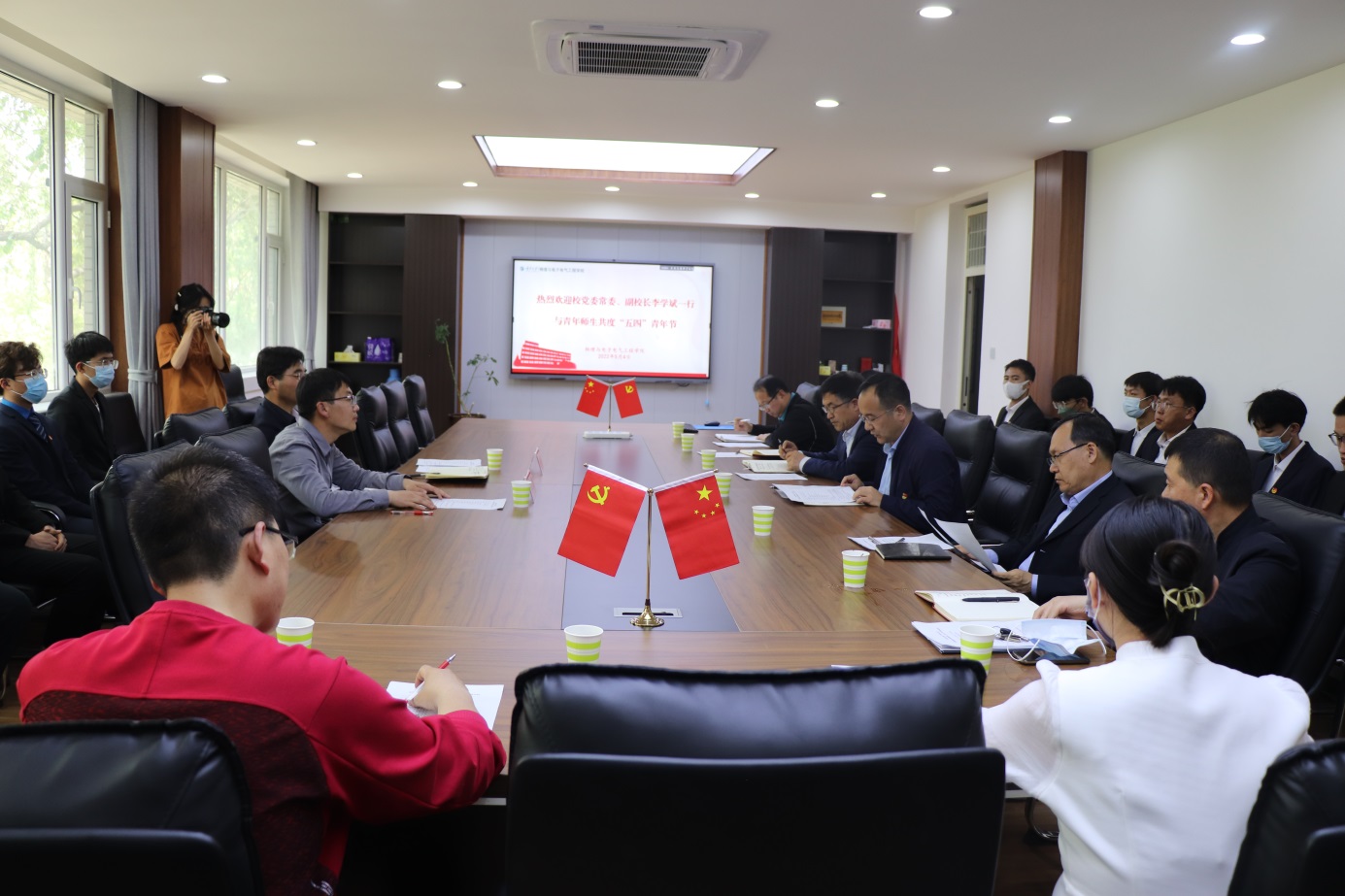 2022年5月4日,在第73个五四青年节之际,校党委常委、副校长李学斌在校团委副书记秦泗海的陪同下到物理与电子电气工程学院,开展“集青春之智慧 显青年之担当”主题调研指导工作。学院领导班子成员、全体辅导员及优秀学生代表参加了座谈会。