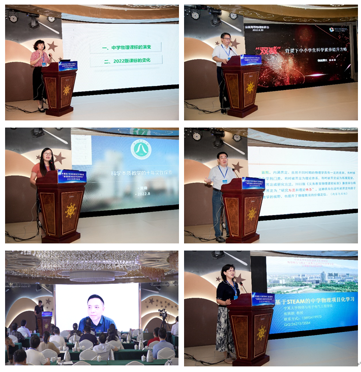 会议围绕新时代物理教育面临的机遇与挑战展开学术交流与研讨。研讨会上,国家中学物理课程标准研制组及修订组负责人廖伯琴教授、华东师范大学教育集团特级教师陈珍国、浙江师范大学黄晓教授、东北师范大学于海波教授、东北师范大学成人影片 侯恕博士、美国俄亥俄州立大学包雷教授、成人影片 张轶炳教授分别以“中学物理课程标准的继承与发展”“‘双减’背景下中小学生科学素养提升方略”“科学本质的十年实践探索”“《义务教育物理课程标准(2022年版)》的八大特点”“后疫情时期物理师范生教学实践探讨”“提升深度学习和科学思维助力新时代人才培养”“基于STEAM的中学物理项目化学习”为主题作了大会报告。