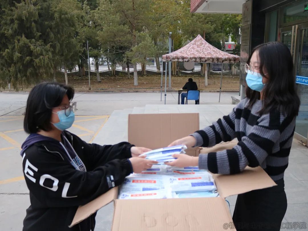 学院党委书记马瑜、党委副书记任克亮和值班教师刘平、高文静、王弄玉老师一同参加了现场签收,在做好登记入库工作后,防疫口罩按照相关要求陆续发放到同学们手中。