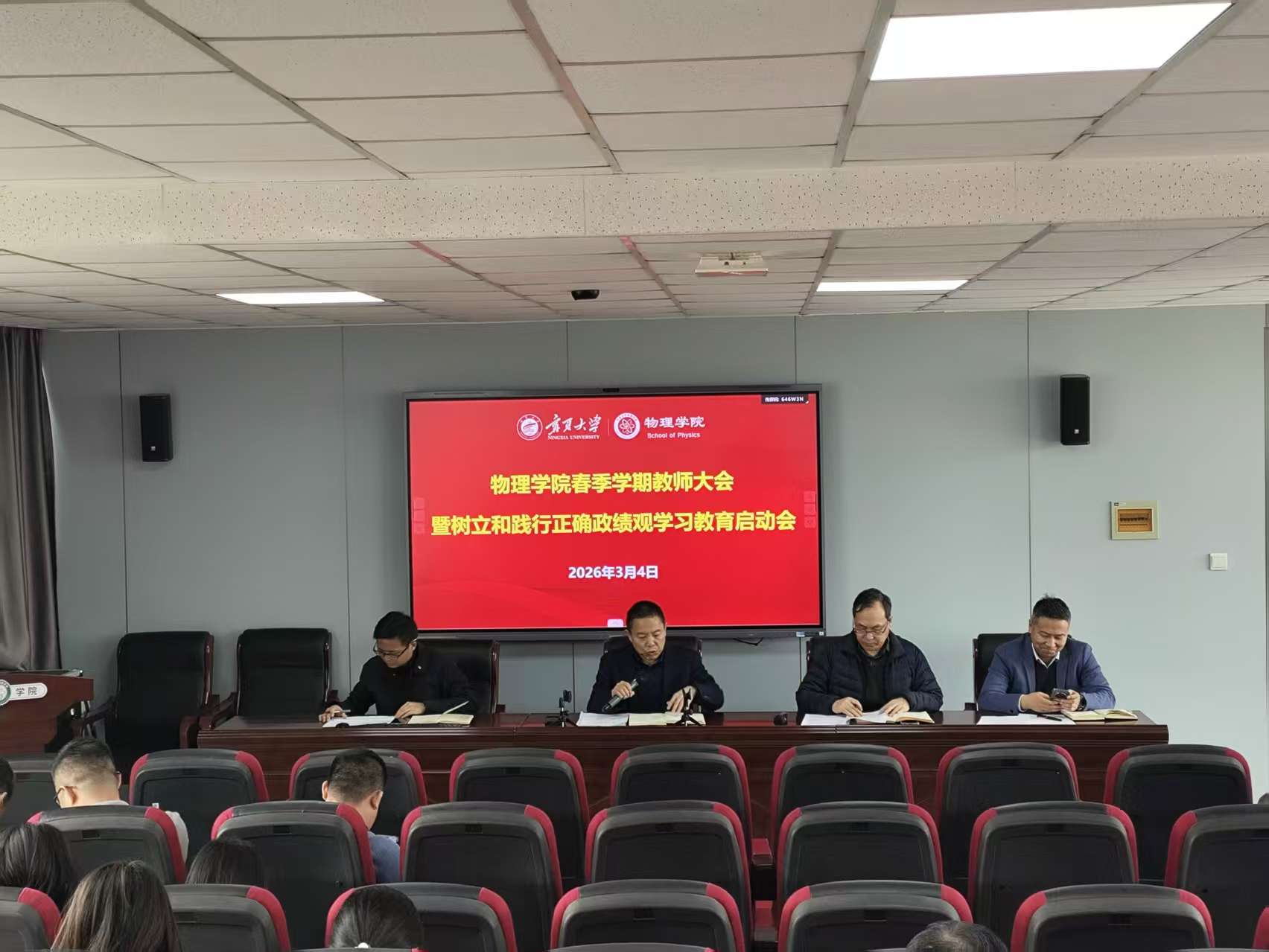 2026年3月4日,成人影片 召开2026年春季学期全体教职工大会暨树立和践行正确政绩观学习教育启动会。会议由学院党总支书记王恒主持,院长和各分管领导就新学期重点工作作具体安排,全体教职工参加会议。