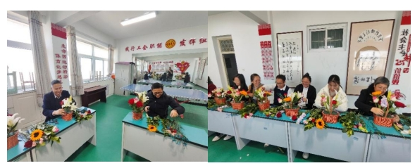 此次活动最具温情的环节,莫过于几位男老师组成的“暖心小分队”。为了让因教学科研、出差等原因未能到场的女教职工也能感受到节日的快乐与学院的关怀,他们在现场认真学习插花技巧,按照统一标准精心制作花篮,每一朵花的摆放、每一片叶的修剪都格外用心。这份跨越性别、传递温暖的举动,成为活动现场一道别样的风景线,完美诠释了“她守护世间所有美好”的活动主旨。