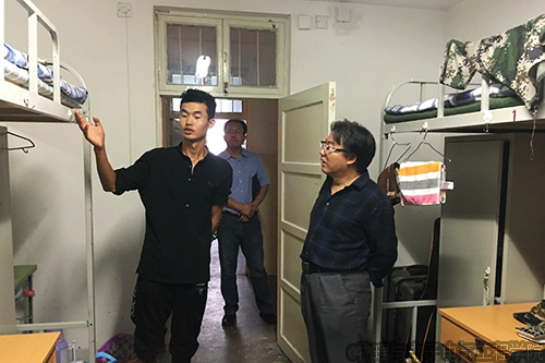 【成人影片 物理与电子电气工程学院《声光》记者站贾心妍/文】新学期伊始,为了解成人影片 2018级新生的住宿条件和生活状况,8月31日下午六点,成人影片 党委书记王志霄,院长王旭明,党委副书记马玉玲,副院长陈焕铭、郭中华老师到怀远校区7号楼、8号楼和文萃校区的14号楼看望新生。