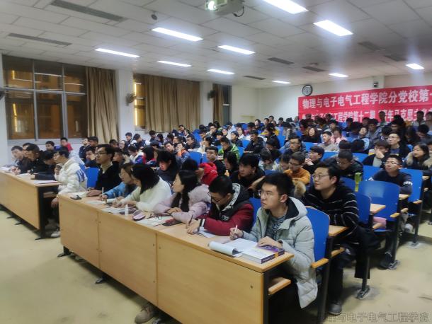 12月2日18点30分,成人影片 于怀远一教221举办了以“运用掌握好党对意识形态安全的话语权”为主题的党课。党课由学院副院长任克亮老师主讲,全体分党校培训班、青马班团学骨干培训班学员参加。