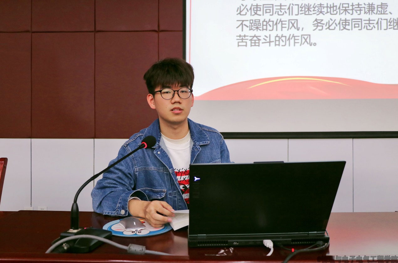 4月21日下午,物理与电子电气工程学院在怀远校区研究生二楼报告厅举行“1+1”党史学习教育第二次集中学习,本次集体学习由专业型研究生党支部组织。领学人蔡志勇和王菲带领大家集体学习《论中国共产党历史》、《中国共产党简史》部分内容,全体学生党员参加了学习。