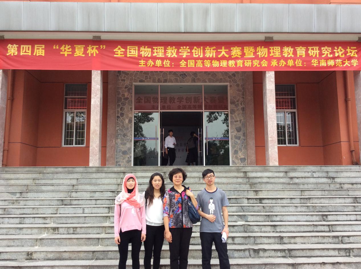 第四届“华夏杯”全国物理教学创新大赛暨物理教育研究论坛在华南师范大学进行,本次大赛选手包括来自全国50多所高校的92名本科生、85名研究生及来自全国各地的43名中学教师,大赛分为教学技能大赛和论文大赛,其中教学技能大赛包括了“讲课、教学设计及现场提问”三个环节,我校派出2014级物理师范本科专业的杜林旭、杨小梅、张菊参加了本科组的教学技能比赛,其中杜林旭、杨小梅获得一等奖,张菊获得二等奖。