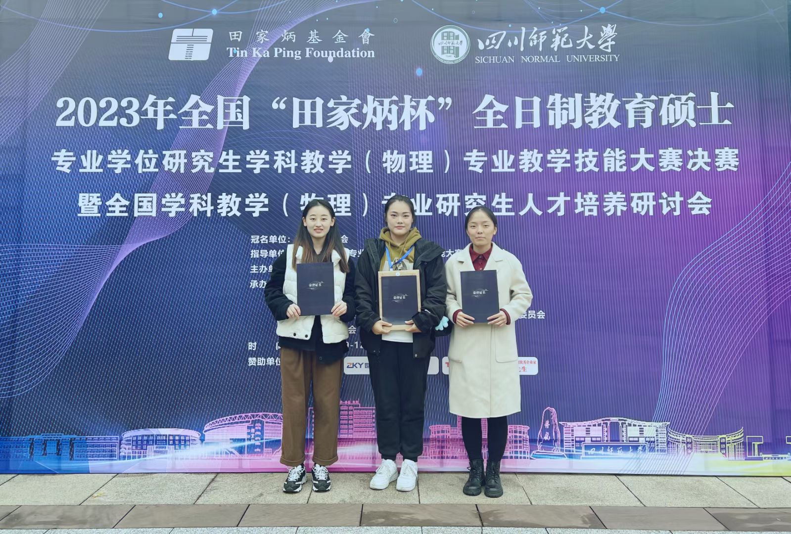 11月12日,2023年全国“田家炳杯”全日制教育硕士专业学位研究生学科教学(物理)专业教学技能大赛决赛在四川师范大学圆满落幕,成人影片 选派的3名研究生从全国初赛中脱颖而出,与来自全国69所高校162名研究生同台竞技,李佳薇、麻心怡荣获二等奖,蔡雨荣获三等奖;指导教师郝睿、马玲被评为“优秀指导教师”。