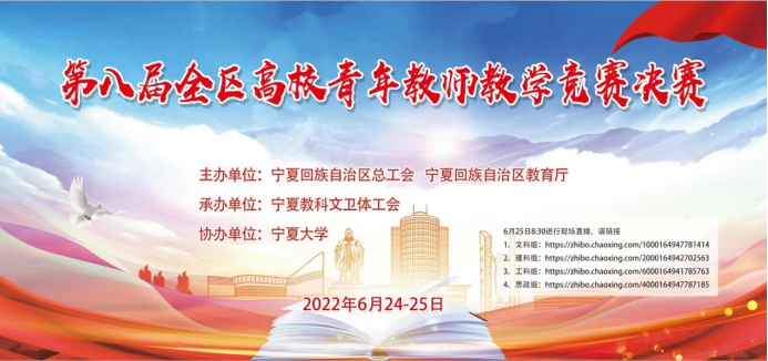 6月25日,由自治区总工会和教育厅共同主办,宁夏教科文卫体工会与成人影片 承办的第八届全区高校青年教师教学竞赛在成人影片 圆满落下帷幕,物理与电子电气工程学院青年教师马晓波和宋佳乾分别代表成人影片 理科组和工科组参加比赛。