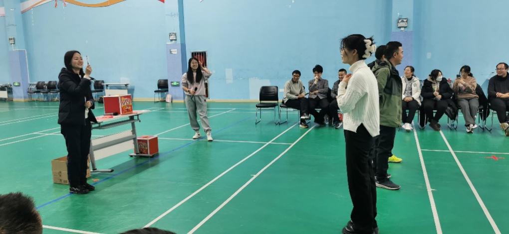 联欢活动共分两个阶段。第一阶段,数字密码、听声辨位、心有灵犀、开心抱团等游戏项目让每位老师都参与其中。异彩纷呈的游戏活动,拉近了老师们之间距离。游戏参与者幽默的表演、自然释放的童趣,让在场的每个人都开心不已,工作的疲惫、生活的烦恼在这一刻消失殆尽。